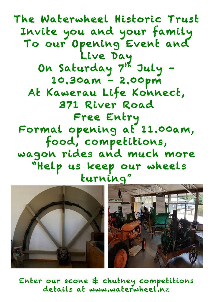 The Waterwheel Historic Trust invite you and your family to our Opening Event and Live Day. Formal opening at 11.00am with food, competitions, wagon rides and much more.